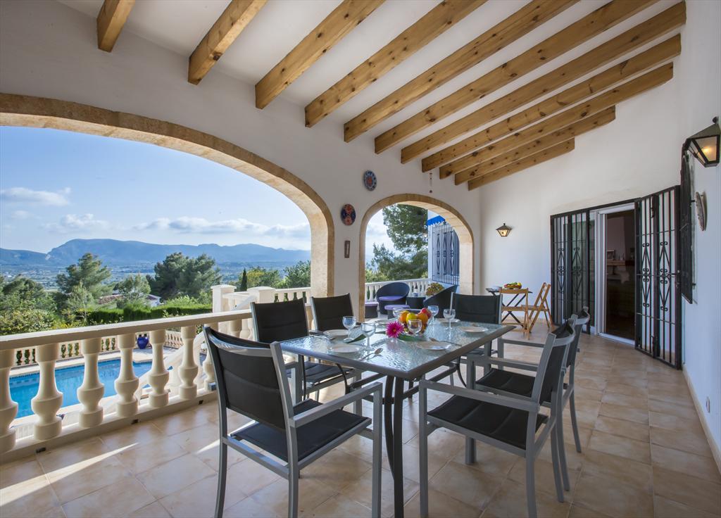 Prachtige en klassieke villa met privé zwembad in Javea, Costa Blanca, Spanje voor 8 personen. Het huis ligt in een residentiële strandomgeving. De villa heeft 4 slaapkamers en 3 badkamers, verdeeld over 2 verdiepingen. De accommodatie biedt privacy, een tuin met grind en bomen, een groot mooi zwembad en mooi uitzicht op de vallei en de bergen. De nabijheid van het strand, sportactiviteiten, uitgaansgelegenheden, bezienswaardigheden en cultuur maakt dit een geschikte villa om uw vakantie in Spanje door te brengen met familie of vrienden.