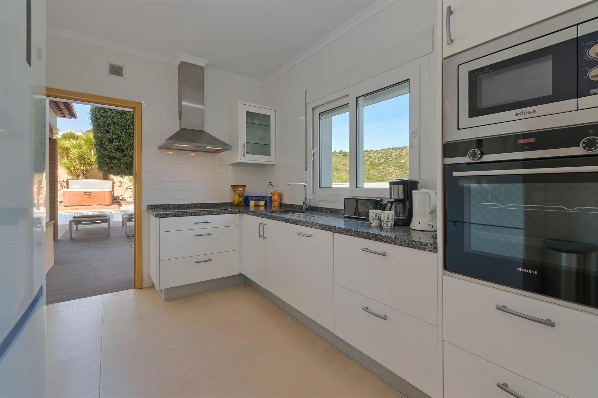 Groot en comfortabel vakantiehuis met privézwembad in Benitachell, aan de Costa Blanca, Spanje voor 8 personen. De woning ligt in een woonwijk en ongeveer 5 km van Javea.Het vakantiehuis heeft 4 slaapkamers en 3 badkamers, verdeeld over de hoofdaccommodatie en een aparte wooneenheid. De accommodatie biedt privacy, een mooie tuin met gazon, bomen en een mooi zwembad. Het comfort en de nabijheid van het strand, sportactiviteiten, uitgaansgelegenheden, bezienswaardigheden en cultuur maken dit een geschikt vakantiehuis om uw vakantie in Spanje door te brengen met familie of vrienden.